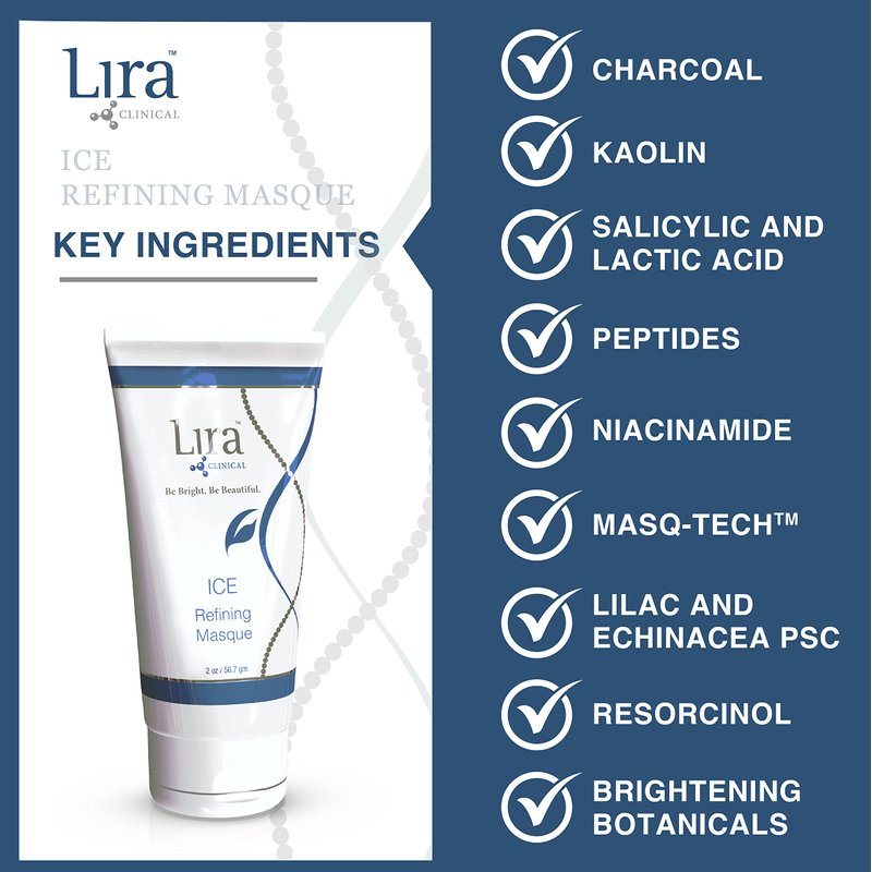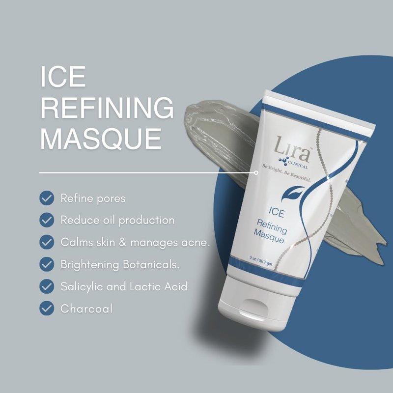 Lira Clinical Ice Refining Masque - Acne & Oil Control Kaolin Clay Mask with Niacinamide & Salicylic Acid - Calm Skin & Refine Pores with Collagen Peptides & Plant Stem Cells - 2 fl oz