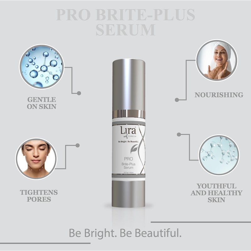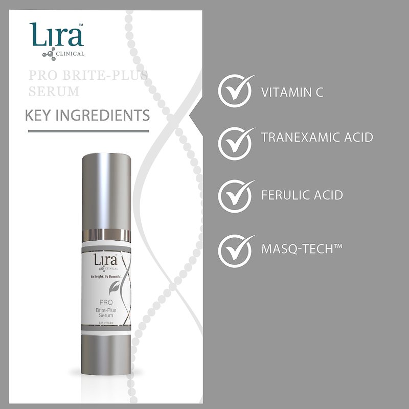 Lira Clinical PRO Brite-Plus Serum - Hydration & Dark Spot Serum - Tranexamic Acid Serum, Ferulic Acid & Vitamin C - Brightens, Firms & Minimizes Pores & Skin - For All Skin Types - 0.5 fl oz