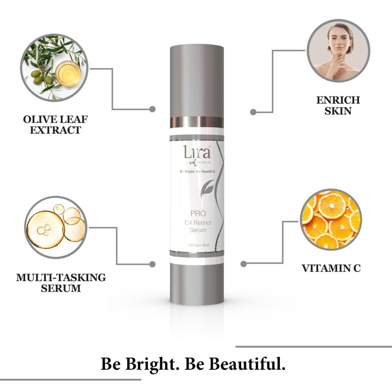 Lira Clinical Pro C4 Retinol Serum - Face Serum with Plant Stem Cells - Vitamin C Brightening Serum with Licorice and Olive Extract - 1.69 Ounce