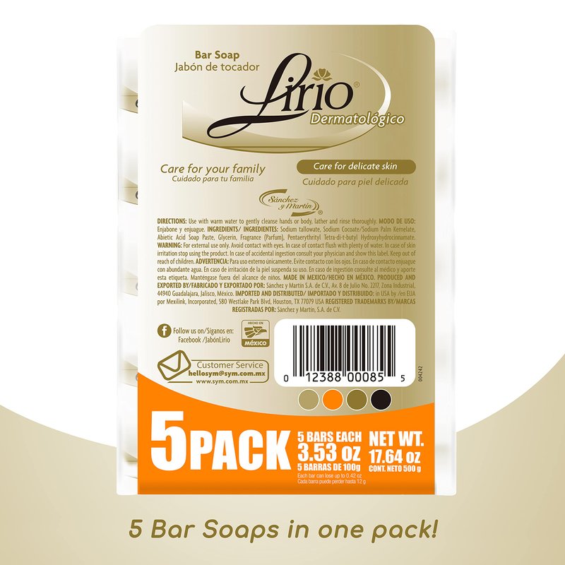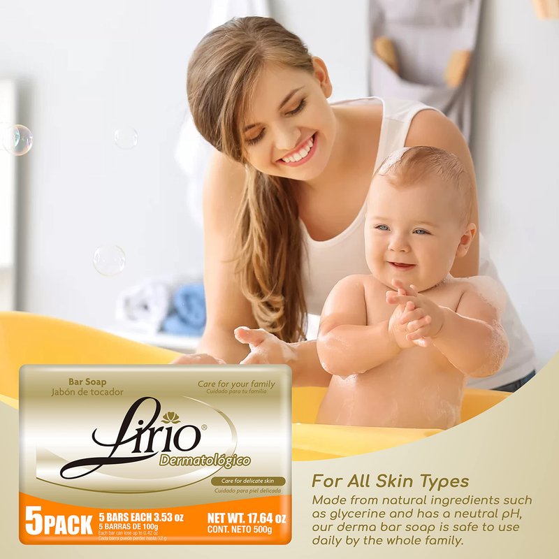 Lirio Derma Bar Soap, Dermatologico Body Soap, 3.5 Ounce, Pack of 5