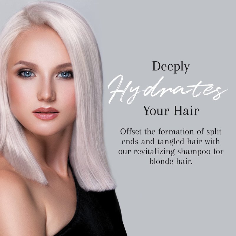 - Deeply Hydrates Your Hair - Offset the formation of split ends and tangled hair with our revitalizing shampoo for blonde hair. This purple toning shampoo contains shea butter, keeping your hair hydrated, soft, and nourished.