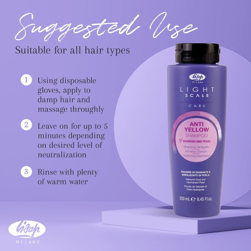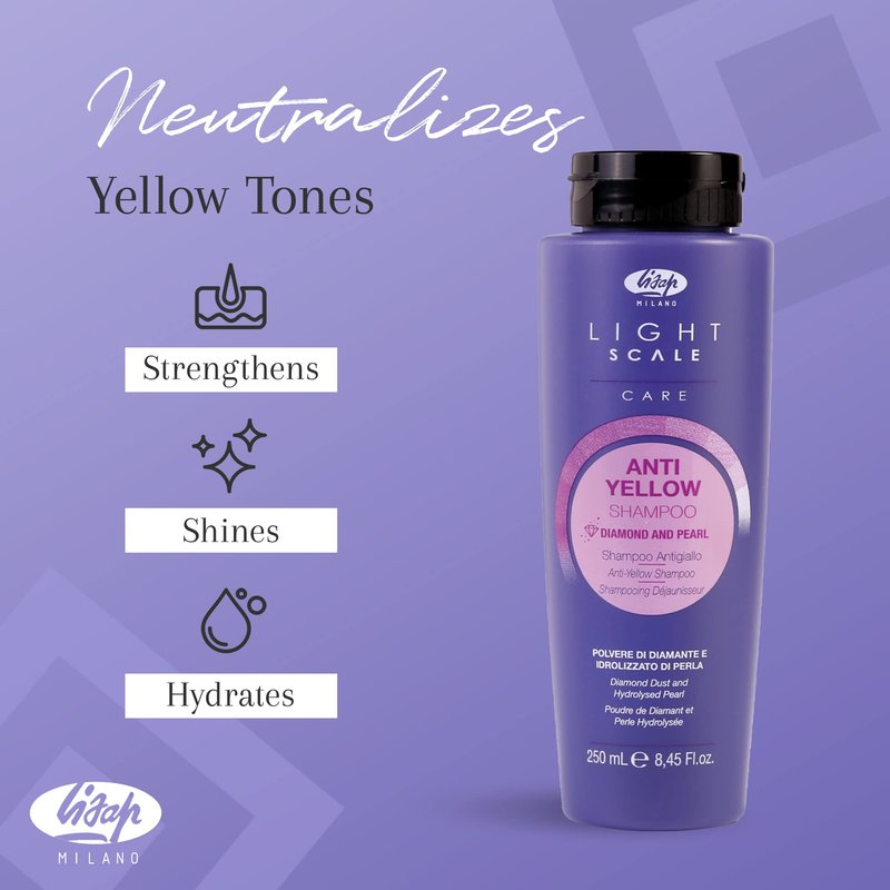Lisap Light Scale Care Anti-Yellow Shampoo, Purple Shampoo for Blonde Hair & Highlights, Nourishing & Hydrating Purple Toner, Neutralizes Brassy Tones for A Balanced Blonde