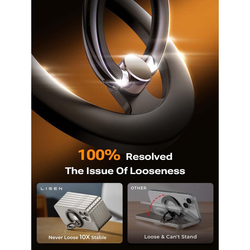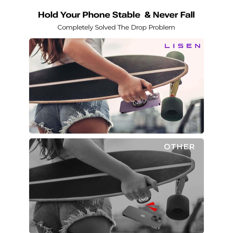 - Powerful Magnets & Enhanced Security: Discover LISEN phone ring holder upgraded permanent magnets – boasting 20 precision-engineered magnets, these offer enhanced precision, superior corrosion resistance, and magnetic strength. With a magnetic force of up to 2.2 pounds, your phone will be held securely, ensuring it never drops during use