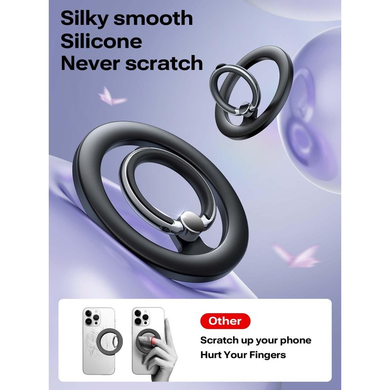 - Silicone Soothing Touch & Finger-Friendly: LISEN for magsafe phone grip features a silicone lining design, ensuring a comfortable finger grip without the discomfort and pain often caused by other metal phone grip. Additionally, the silicone design is gentle on your phone, preventing scratches. The silicone tip at the end of the phone grip allows for easy pulling out and using the ring