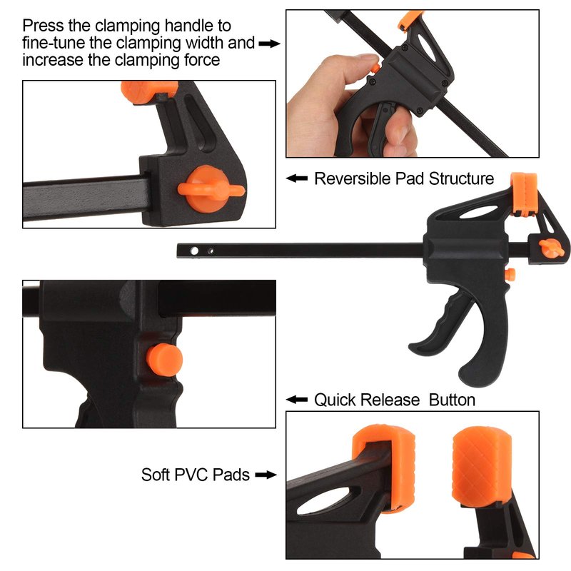 - 【Durable And Sturdy】Quick clamps for woodworking is made of nylon body and high-quality hardened steel that provide great impact resistance.