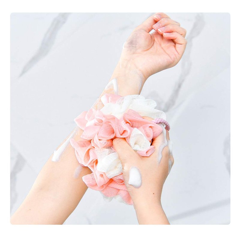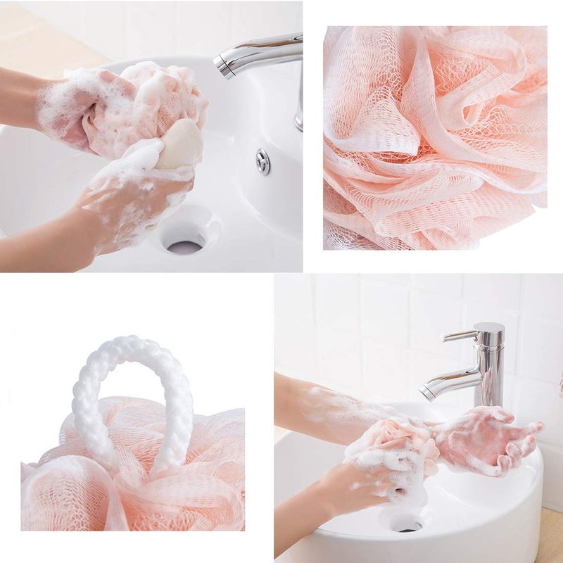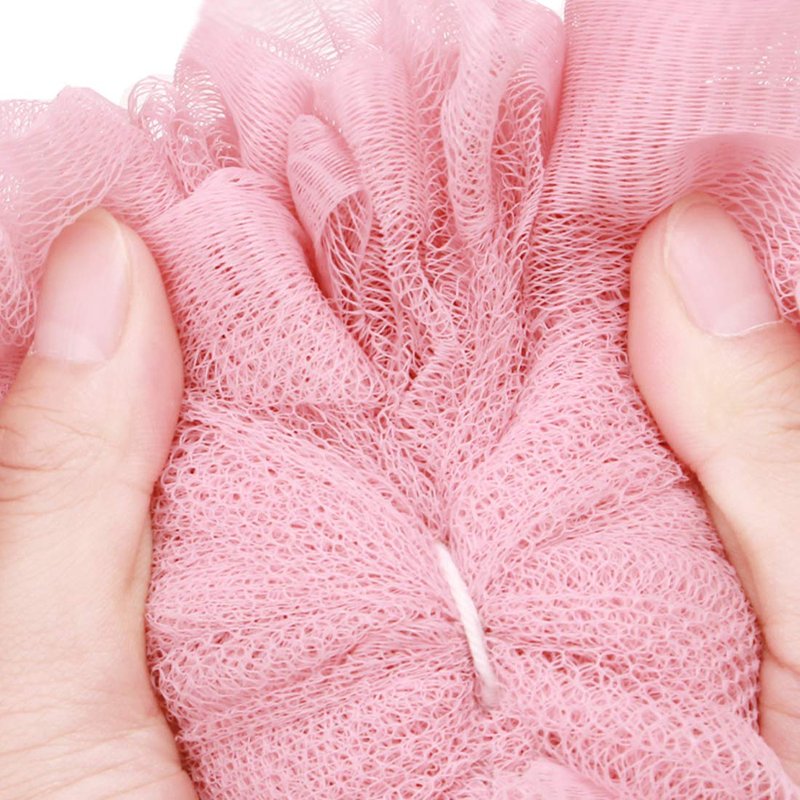 LISSOMPLUME Bath Shower Sponge Loofah Mesh Pouf Brush Ball Exfoliating Accessory Pink Color