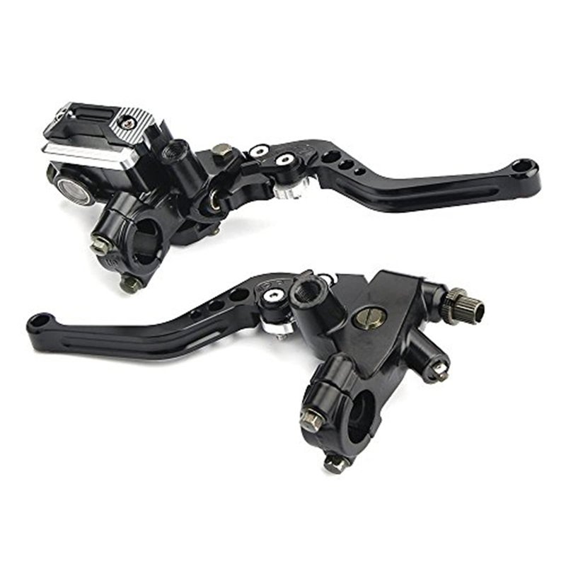 - Function:Clutch and brake lever set: Left Lever is matching work with cable and right brake master cylinder is hydraulic brake type.The pivot design allows the lever to fold outward to prevent bending or breaking in the event of a crash