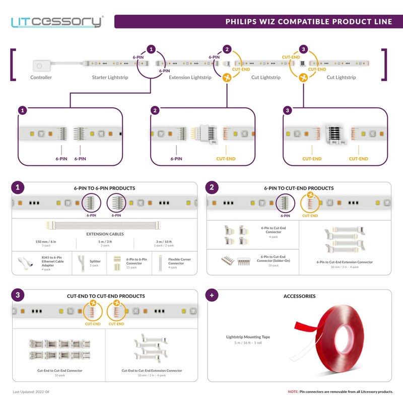 Philips only allows for a single continuous lightstrip run. Litcessory products allow for several!