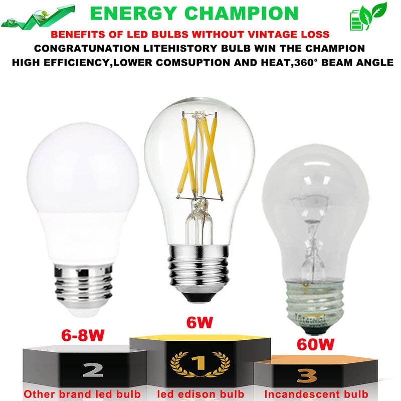 - 【VINTAGE LOOK&ENERGY SAVING】:Type a light bulb is classic edison style,Let you benefits of led ceiling fan light bulbs without vintage loss;6w led bulb equivalent 60w light bulbs; Using the led edison bulb can save up to 90% of energy and reduce your billing costs.