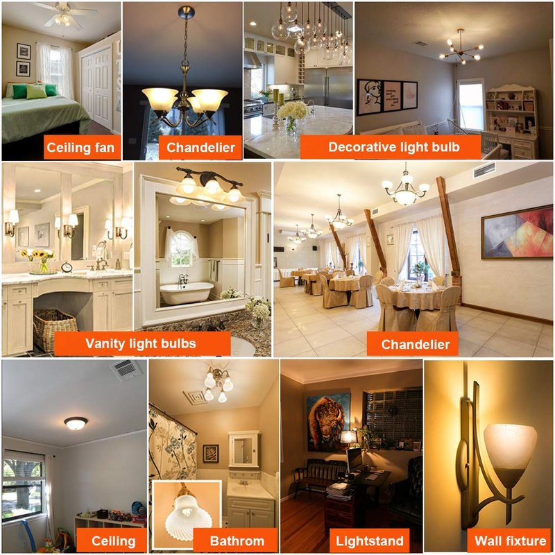 extensively applied for chandelier light bulbs,Ceiling fan light bulbs,Vanity light bulbs,desk light bulb,Wall light bulb,Dining room light bulbs,Bathroom light bulb,Decorative light bulbs,etc;