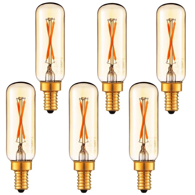 LiteHistory Dimmable T6 led Bulb 25W Candelabra led 2200K Amber 120lm 2W e12 T25 led Bulb 6Pack