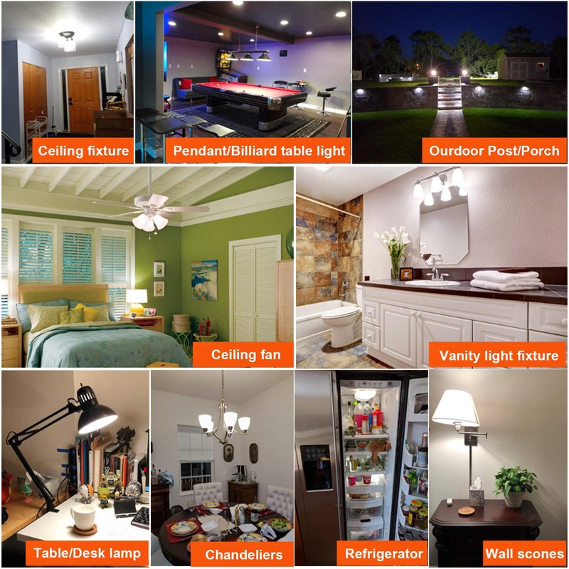 applied for fan light bulb,pendant light bulbs,ceiling light bulbs,chandelier light bulbs,vanity light bulb,globe light bulbs,appliance bulb,refrigerator light bulb,bathroom light bulbs,wall scones,desk lamp,table lamp,bedside light stand,decoration,indoor and outdoor lighting for post,porch,yard,etc.