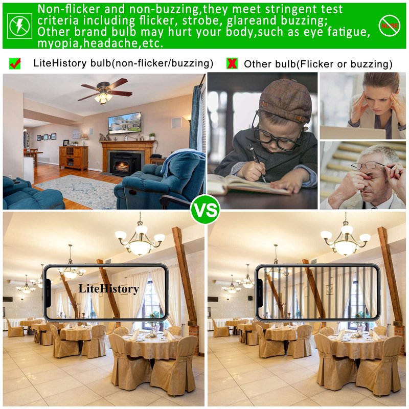 - 【SMOOTH DIMMABLE&COMPACT】:E26 edison bulb is smooth dimming 0%-100%,Compatible with 95% Lutron and Leviton;Retro e26 light bulb suitable for most light fixture with medium E26 socket,especially for fixtures with light bulbs in rustic or modern Ceiling fan,Chandeliers,Vanity,Refrigerator,Desk lamp,Wall scones,etc.To replace Ceiling fan light bulbs,Chandelier light bulbs,A15 light bulb,G45 led bulb,G14 light bulb,G16.5 light bulb,G16 light bulb,G50 light bulbs,A17 bulb,A19 bulb,,ST58 bulb,etc;