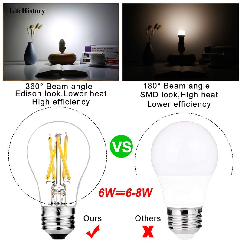 - 【HIGH LUMEN&360° BEAM AMGLE】:6W led bulb up to 600lumen equal to 60 watt light bulb;Unique cross filament design that looks stunning on or off, helps distribute light evenly, and helps diffuse the shadow effect throughout the room;E26 led bulb 60 Watt help lighting up your life without any shadow;