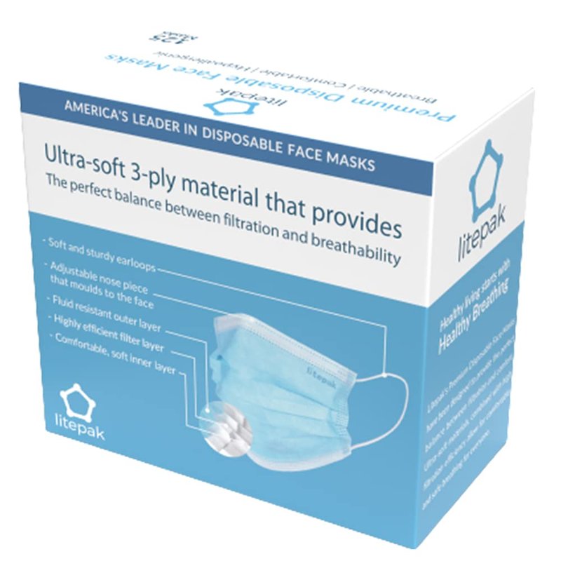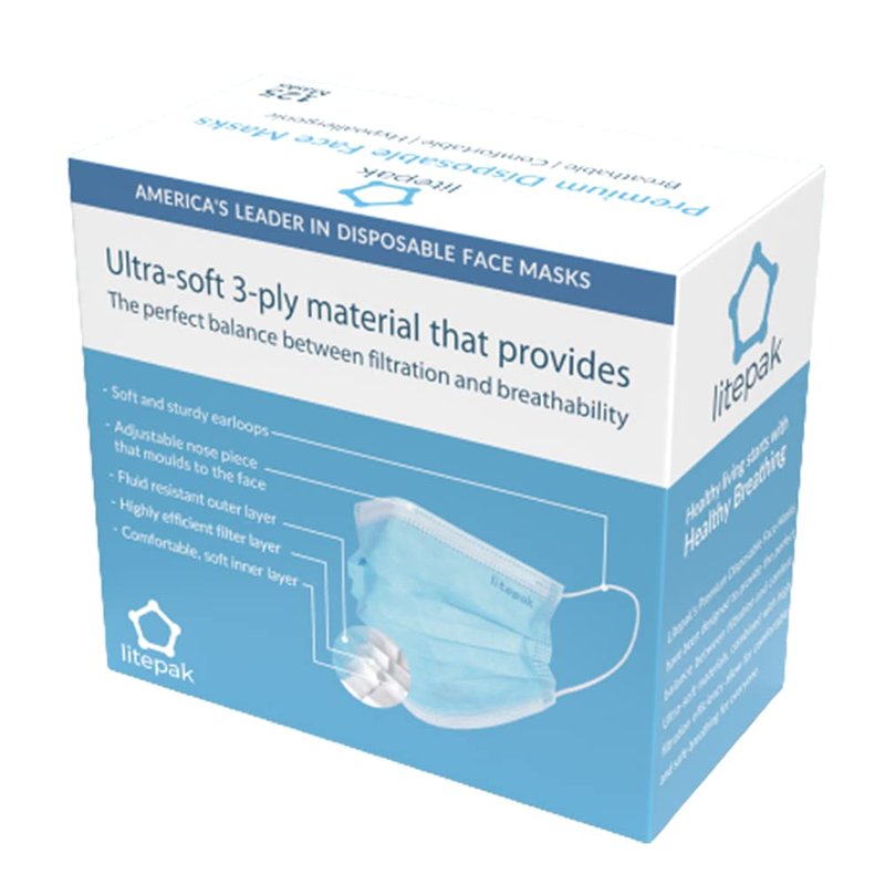Litepak 125-Pack Disposable Face Mask Premium Comfort Earloops with Dispenser Box