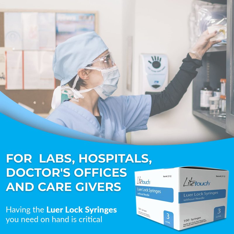 - ✅FOR HOSPITALS, DOCTORS OFFICES AND CARE GIVERS - Having the Luer Lock Syringes you need on hand is critical to treating your patients 3mL Luer Lock Syringe
