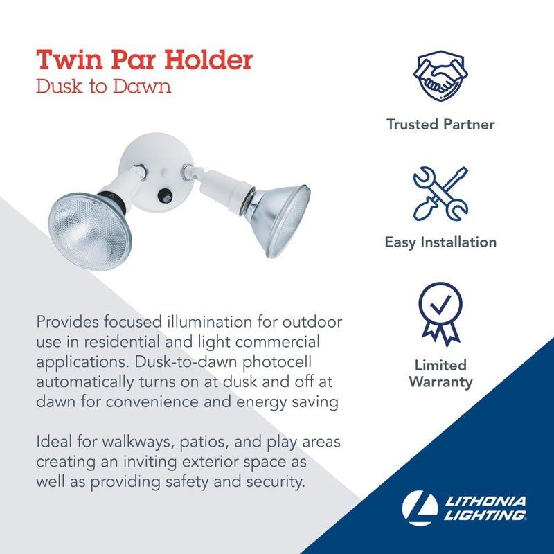 Lithonia Lighting OFTH 300PR 120 P WH M12 Adjustable Twin Par Outdoor Flood Light Holder, Photocell Dusk to Dawn Sensor for Backyard Lighting, 120 Volts, Uses 2 Lamps Up to 150W (Not Included), White