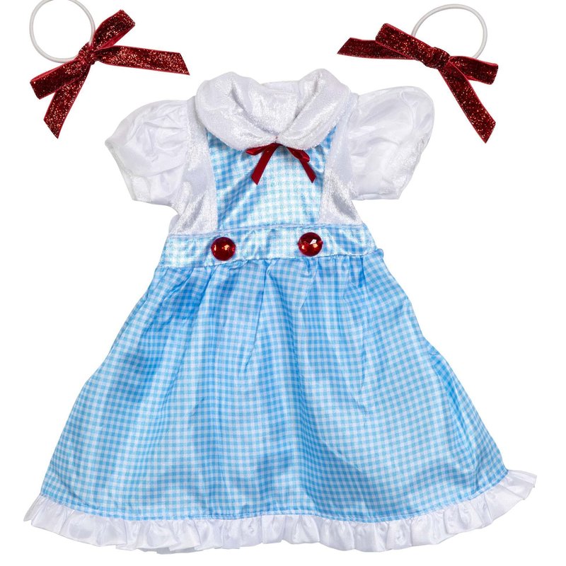 This Kansas Girl with Bow doll dress will transform your child’s doll into a cute little Kansas Girl. Designed to match our child dress for hours of imaginative play. This design features clothing quality stretchy fabrics, is machine washable and fastens with a hook and loop closure. It’s made to fit 16"-20" dolls and plush animals, including American Girl and Madame Alexander dolls. Doll or plush not included. Features: Clothing quality fabrics; machine washable. Stretchy fabrics with hook and loop closures. Little Adventures products are safety tested to meet all physical, mechanical and flammability requirements.DOLL DRESS ONLY. DOLL CROWN, DOLL, ARE NOT INCLUDED