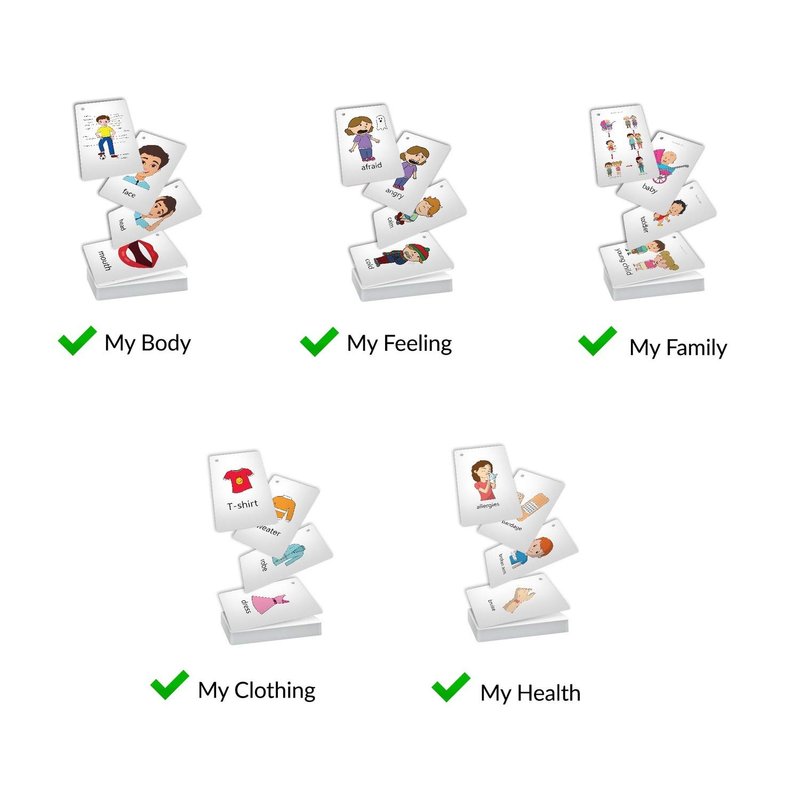 - ✔️ Teaches basic vocabulary for Feelings & Emotions, Body Parts, Family, Clothing and Health.