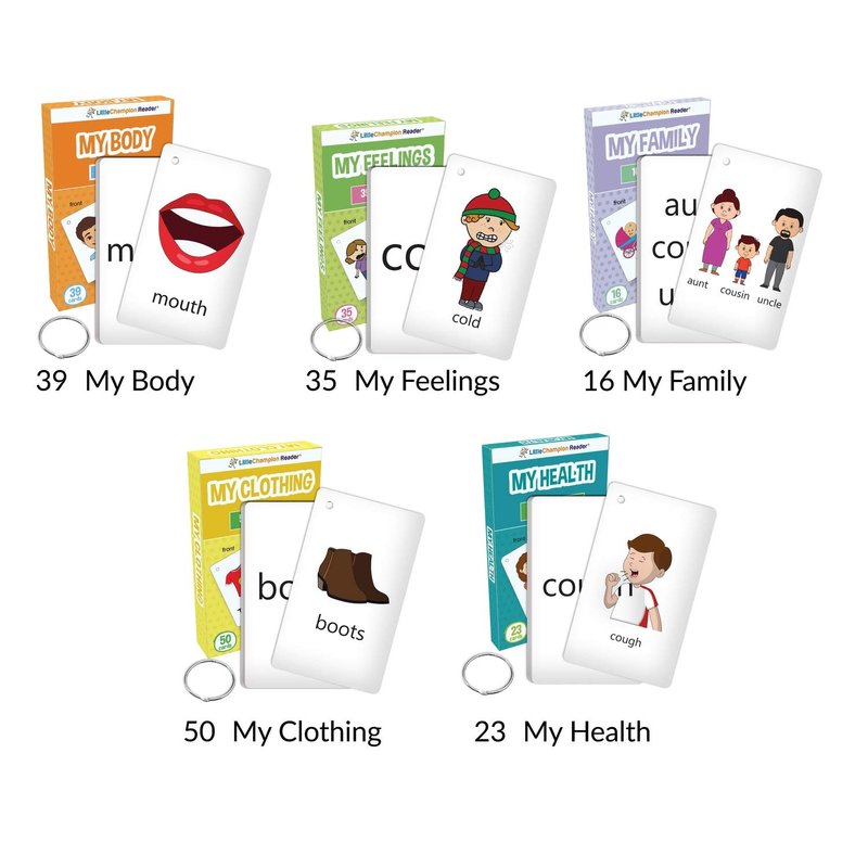Little Champion Reader Set 3 Flash Cards for Toddlers - 163 Feelings & Emotions, Body Parts, Family, Clothing and Health Flash Cards - Learning for Baby Toddler Preschool Kindergarten