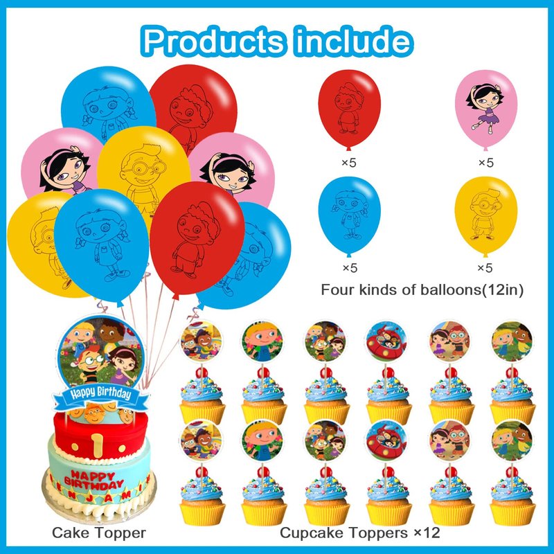 Little Einsteins Party Supplies, Bundle of 35 Cartoon Adevanture Theme Party Decorations Set includes happy birthday banner, cake topper, birthday balloons for fans birthday decorations Convenient and easy to assemble, save time!