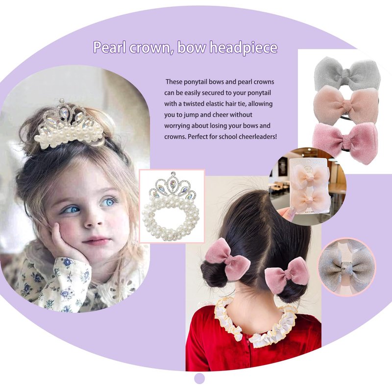 - 🏫Dress-up Anywhere: Kids hair accessories for girls include ponytail girl bows and pearl crowns with sturdy elastic rubber kids hair ties, covered with fabric for a delicate appearance. Elastic girls hair ties can be easily secured to your ponytail with a twisted elastic hair tie, hair accessories for teens allowing your kids to jump and cheer without worrying about losing.