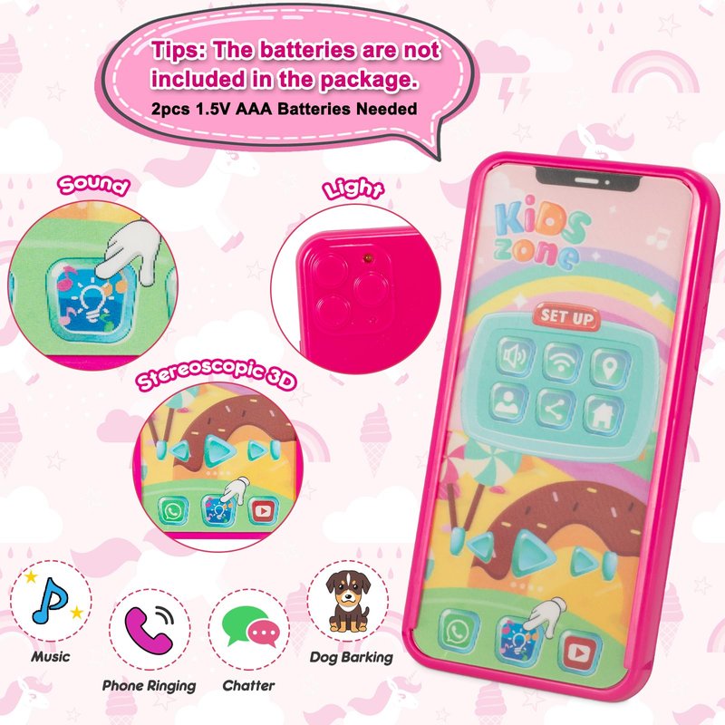 - Interactive Toy Kits: The car keys came with 3 LR44 button batteries. Pressing the home button, toy cell phone (2pcs 1.5V AAA Batteries Needed, Not Included) will make real sounds and lights. Imagined your girl confidently heading off to school with a cute purse in hand, sipping milk from the cup, putting on sunglasses, picking up keys and phone just like what Moms do! Greatly satisfied the little girl's curiosity and desire for imitation.