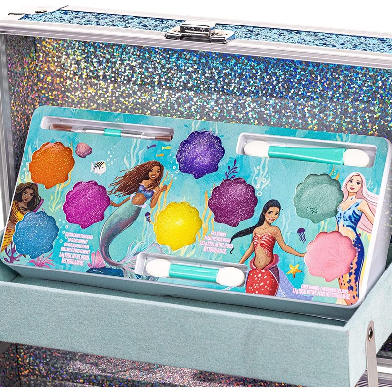 Little Mermaid Train Case Beauty Set, Kids Makeup Kit for Girls, Real Washable Toy Makeup Set, Play Makeup, Pretend Play, Party Favor, Birthday, Toys Ages 3 4 5 6 7 8 9 10 11 12