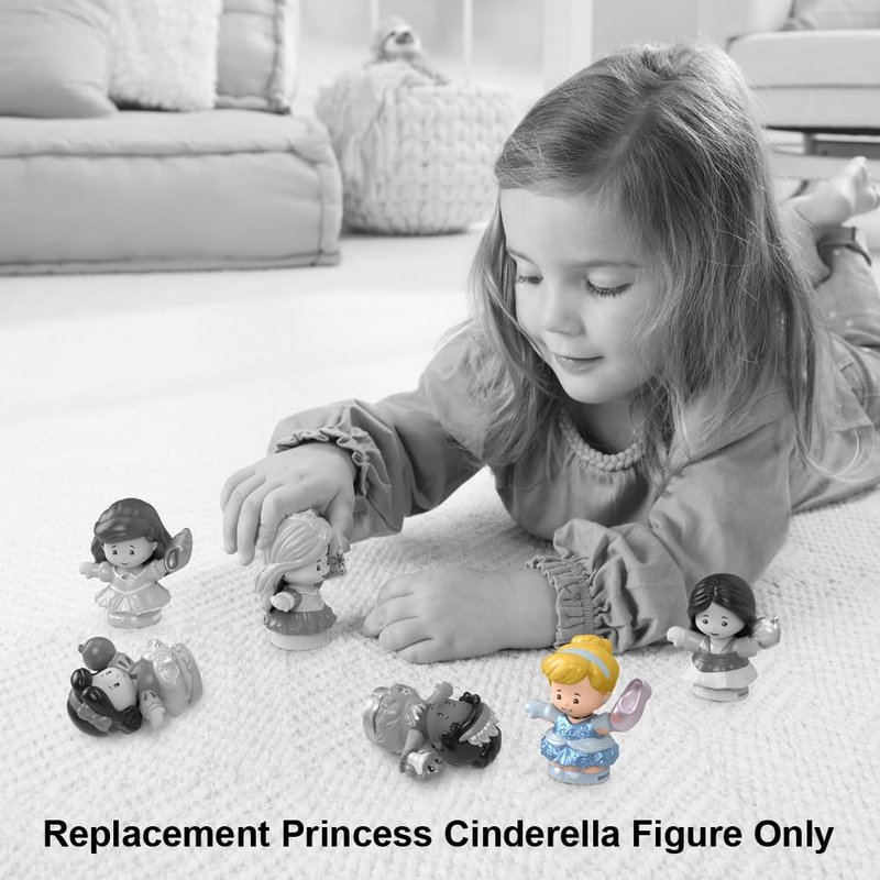 What’s included? Replacement Princess Cinderella Figure. This replacement Cinderella Figure works with the Fisher-Price Little People Talking Castle Dollhouse Playset GXY00.