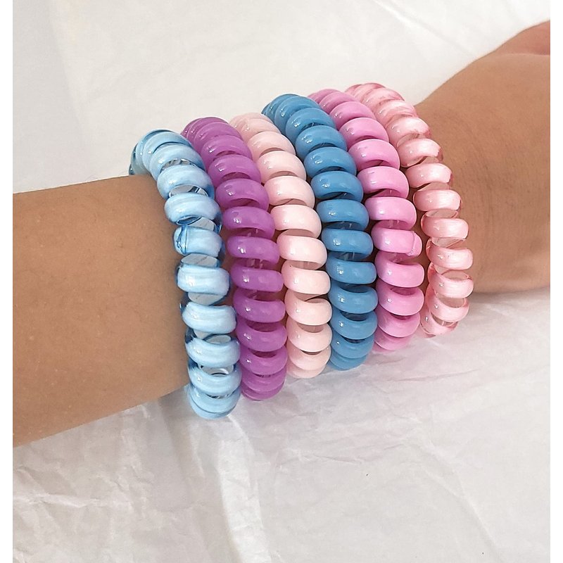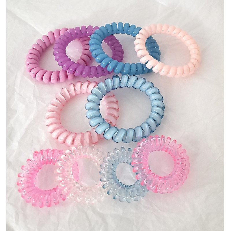Little Trouble Solution Cute Candy Jelly Transparent Color 10pcs 3.5/5.5cm Set Spiral Hair Tie, Coil Elastics Ties, Telephone Wire Band, Ponytail Holder Bands (Mix (Purple, Pink, Blue))