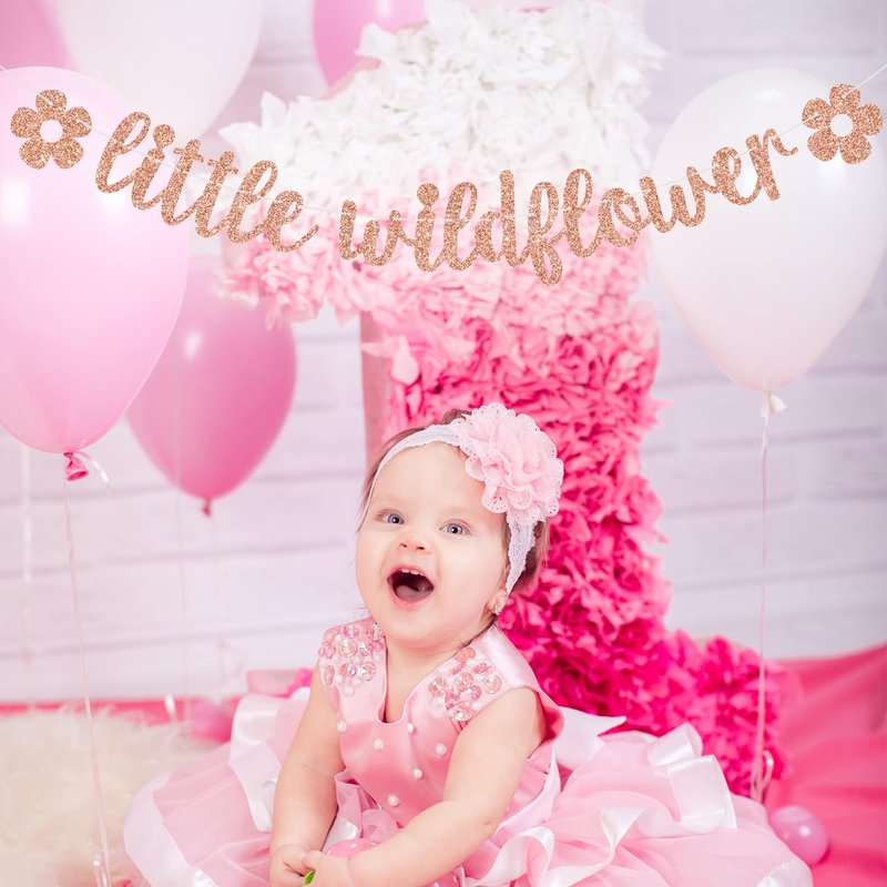 Little Wildflower Banner, It's a Girl Baby Shower Decorations, Welcome Baby Girl Decor, Girls Happy Birthday Party Decorations Supplies