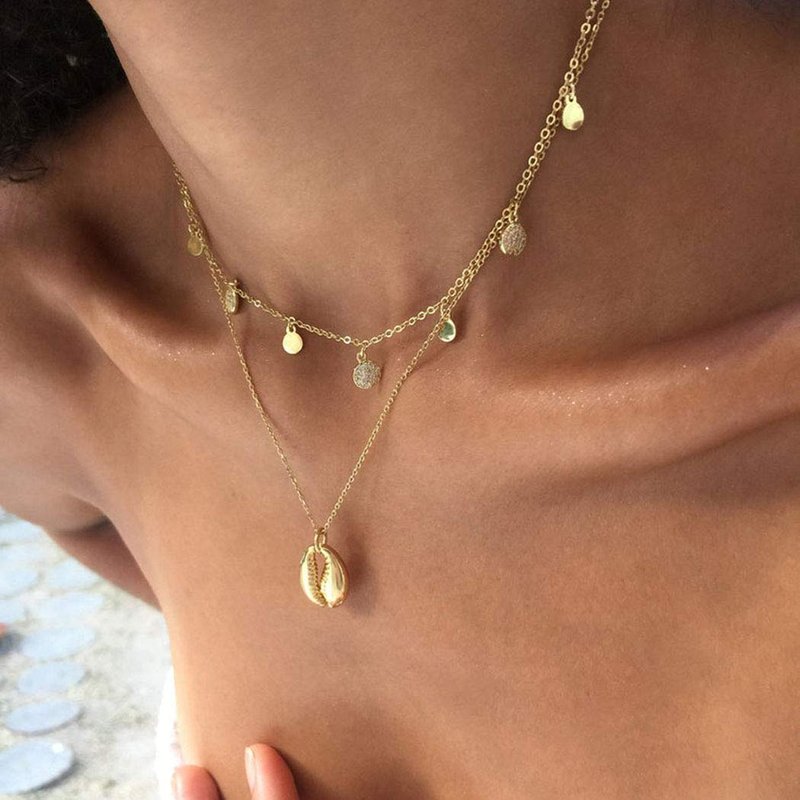 LittleB Boho Layered Shell Pendant Necklace Gold Sequins Necklaces Chain Jewelry for Women and Girls