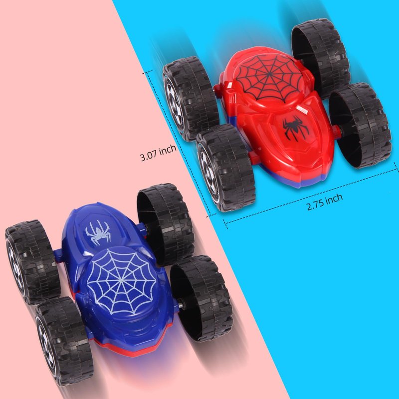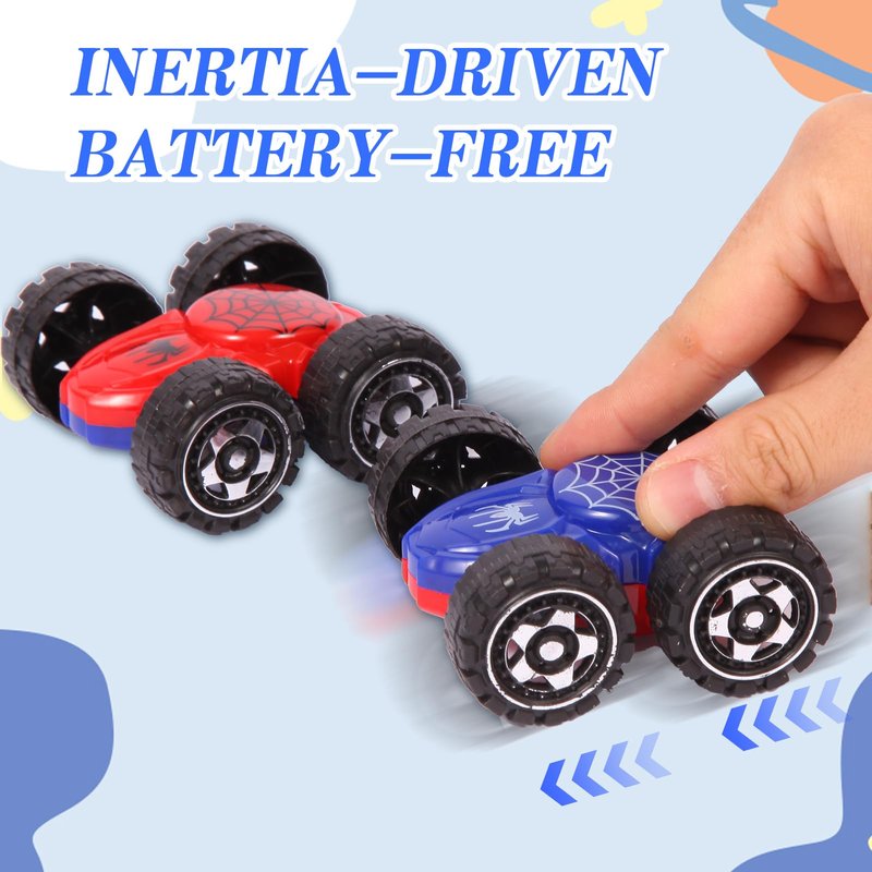 - 6-Pack Double-Sided Cars for Fun Play: Comes with 6 individual toddler car toys, each featuring a unique red/blue double-sided design. Ideal for 1 year old boys toys to flip over obstacles and change colors for endless interactive fun.