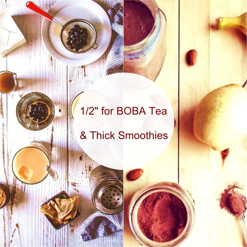 - EXTRA WIDE FAT BOBA STRAWS: The width of these stainless steel straws is 1/2", so don't let a thick smoothie intimidate you again. It’s big enough for your boba tapioca pearl bubble tea, thick smoothies, milkshakes, jumbo drinks, morning shakes. Since summer's coming the Stainless Steel material will make your cold drink taste colder, you are goanna love the coldness in the straw when sipping