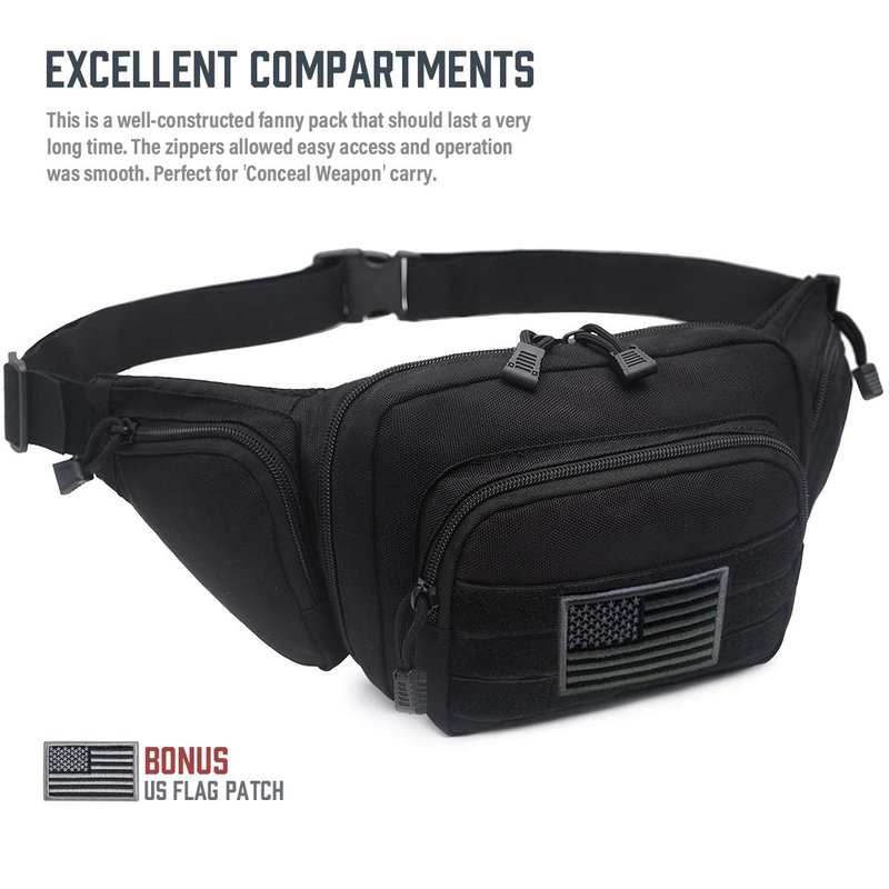 LIVANS Concealed Carry Fanny Pack Holster, Tactical Conceal Pistol Bag Mens Gun Carry Concealment Holster Fits 1911 and G 17,19,20,21 Fits up 55" in Waist Free U.S Flag Patch