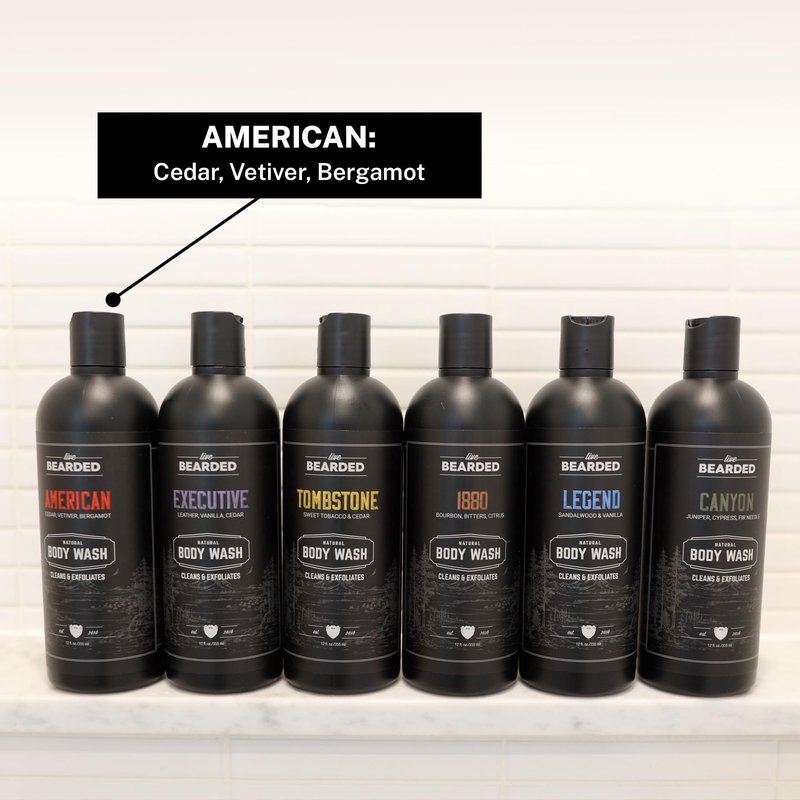 Live Bearded All-Natural Charcoal Body Wash for Men, Exfoliating Moisturizing Body Wash with Charcoal, Men’s Shower Gel - Cedar, Vetiver, Bergamot