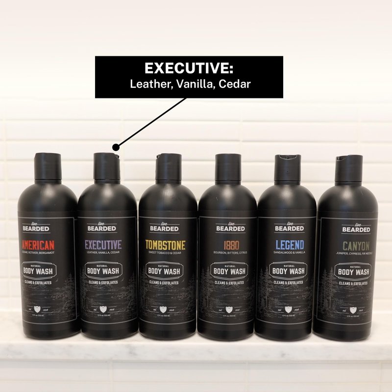 Live Bearded All-Natural Charcoal Body Wash for Men, Exfoliating Moisturizing Body Wash with Charcoal, Men’s Shower Gel - Leather, Vanilla, Cedar