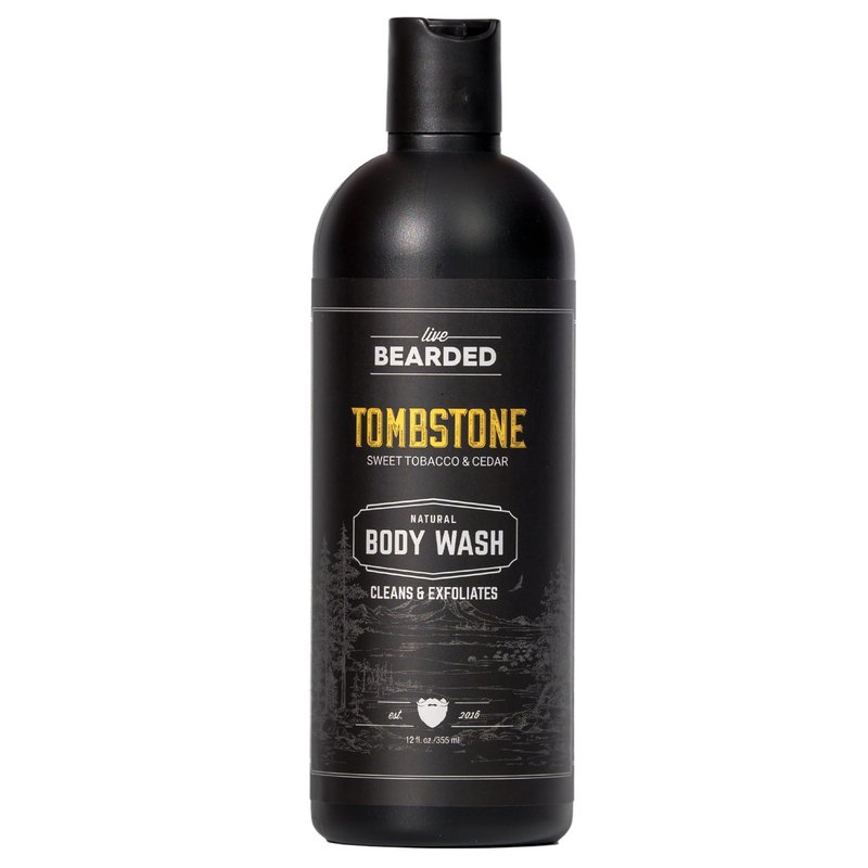 Live Bearded All-Natural Charcoal Body Wash for Men, Exfoliating Moisturizing Body Wash with Charcoal, Men’s Shower Gel - Sweet Tobacco, Cedar