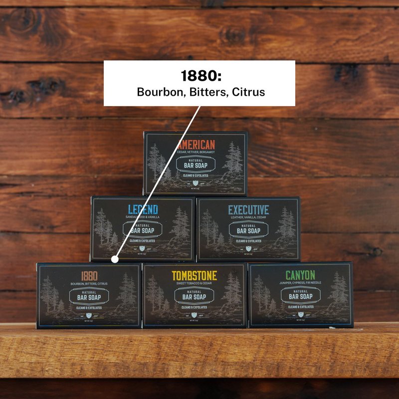 - 1880 - For the discerning gent who knows exactly what he’s about when he orders up at his favorite saloon, our 1880 fragrance smacks of citrus, bitters, and good old-fashioned bourbon. It’s served on the rocks, with volcanic stone for exfoliation.