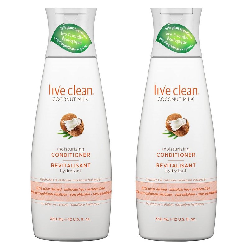 Live Clean Coconut Milk Moisturizing Conditioner (Pack of 2) with Certified Organic Coconut Extract and Oil, Petrolatum-free, Phthalate-free and Paraben-free, 12 oz