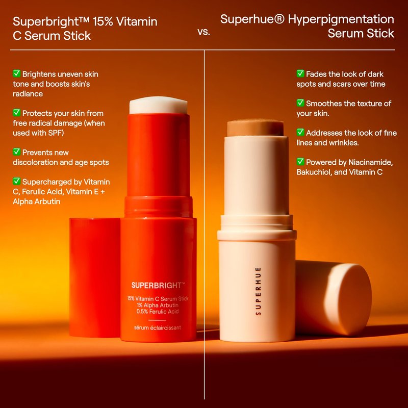 Live Tinted Superbright: 15% Vitamin C Brightening Facial Serum Stick, Reduces Dark Spots and Wrinkles, with Vitamin E, 0.5% Ferulic Acid, 0.5 oz.