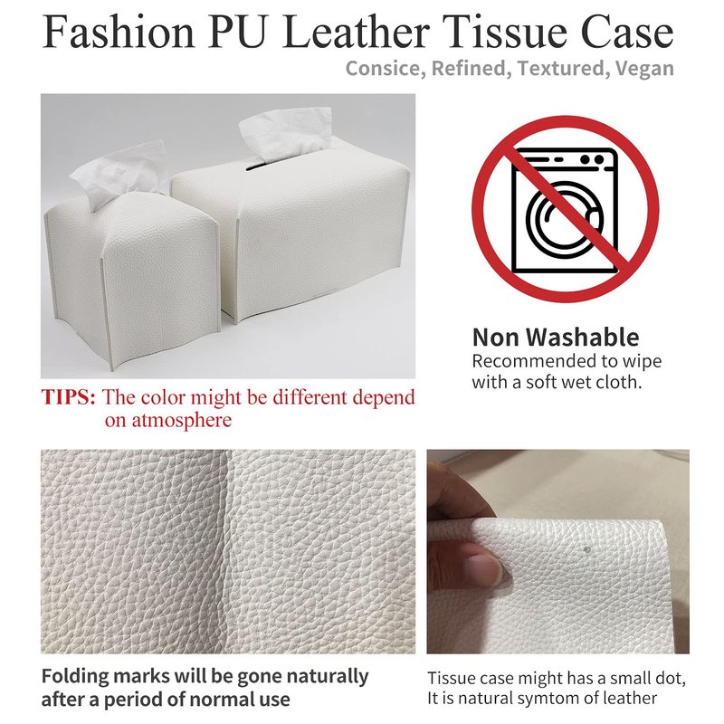 - CONCISE & REFINDED - Tissue box cover cube is made of durable premium PU leather. The stylish decoration tissue case box holder organizer has concise and refined, excellent workmanship. The clean, concise and modern design is perfect for home decor and office use, this is the missing piece in your room design that will complement any interior decor. It is the perfect choice for concealing your tissue boxes.