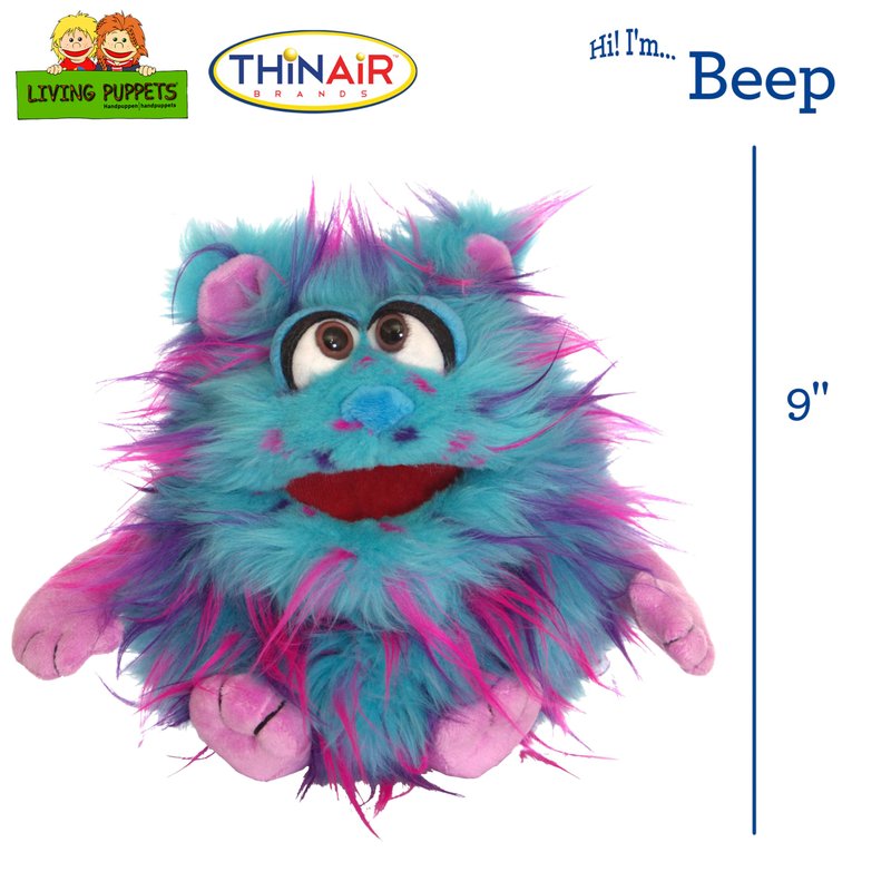 Living Puppets - Beep The 9-Inch Blue Friendly Monster, Plush Hand Puppet for Boys and Girls