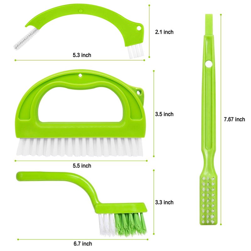 - MULTIFUNCTION 4 IN 1 GROUT BRUSH SET: Each package comes with 4 pcs of grout brushes, big scrubber for grout, joint tiles, tub, floor cleaning or utility room fixtures; long brush is the specialist for wall tile, rails, window frames; curve brush is for shower door lintels, sink drainages, cooktops and dials; V shape brush for wall tile, rails, window frames, sliding door tracks.