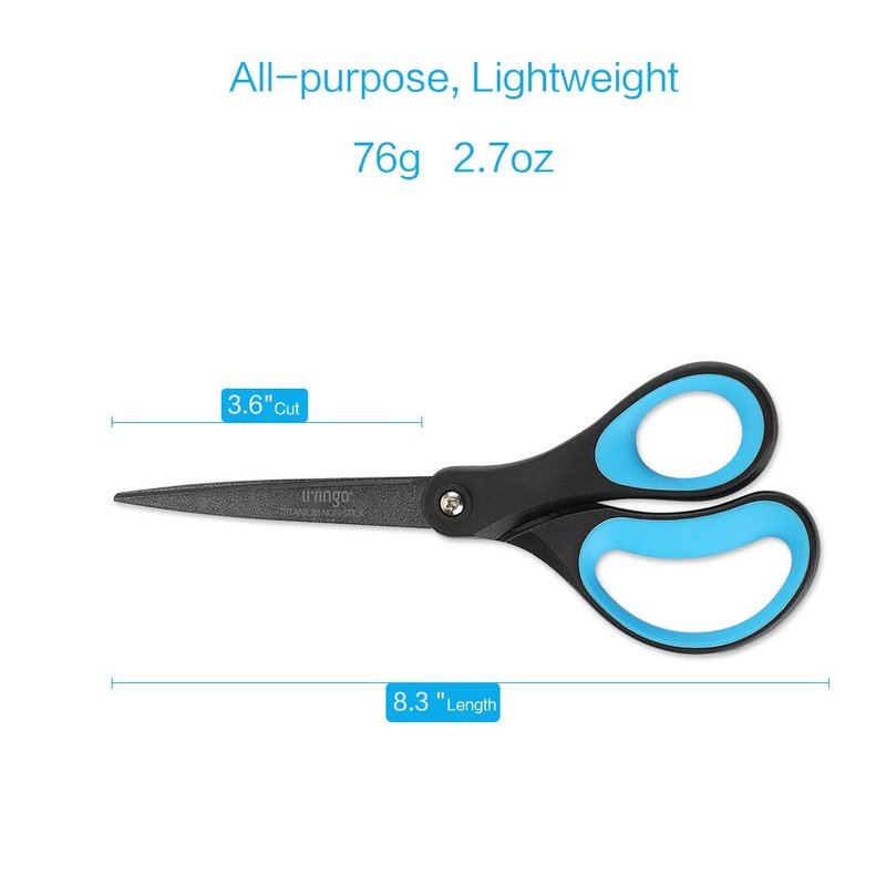 - TITANIUM NON-STICK teflon coating blades, 8.3" Length, 3.1" Cut. They are strongly resistant to corrosion and to adhesives such as glue and tape, making them ideal for almost any kinds of tasks.
