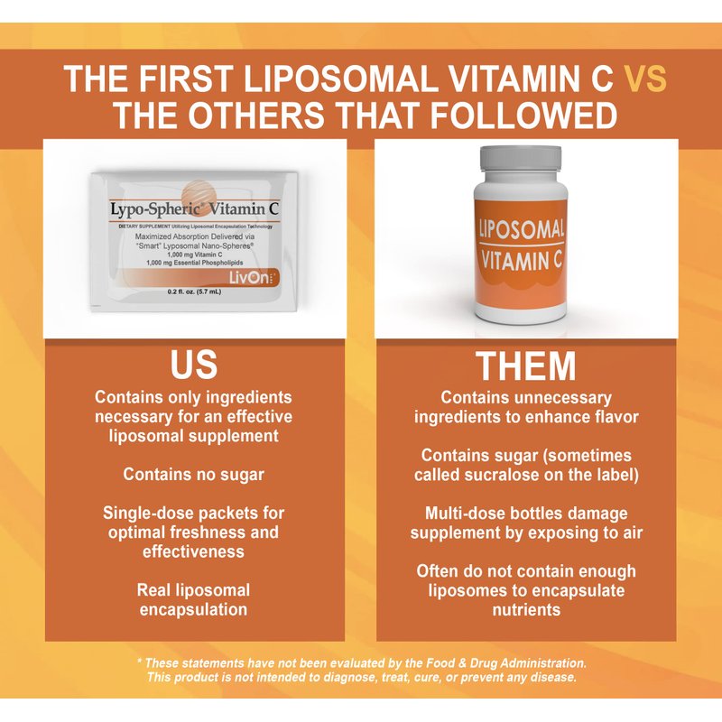 LivOn Laboratories Lypo–Spheric Liposomal Vitamin C 1000mg 30 Packets - No Sugar, Immune Support, Plant Based - Easy to Swallow, Absorbable, Convenient Individual Packets 100% Non–GMO, Gluten Free
