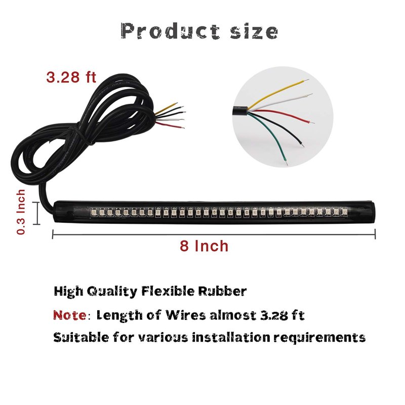 LivTee Universal 8" Flexible LED Light Strip with Tail Brake Stop Turn Signal Lights All-in-one for Motorcycle Scooter Quad Cruiser Off Road, Red/Amber