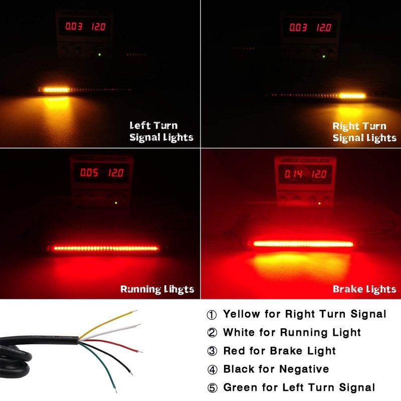 - Supports four functions: Running Tail Light, Bake Light, Left Turn Signal and Right Turn Signal Lights.