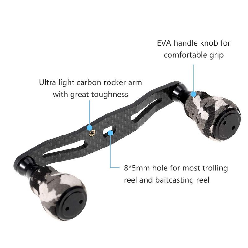 - 【SUPER LIGHT MATERIAL】Carbon rocker arm and EVA knob make this reel handle super light.Crafted with corrosion-resistant carbon, this handle ensures minimal weight addition.