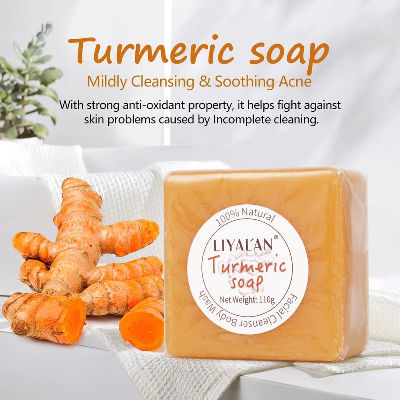 - 🍋Deep Cleansing: LiyalanTurmeric bar soap can clean pores and impurities,remove excessive oil and skin horn and dirt,sooth acne-prone skin.